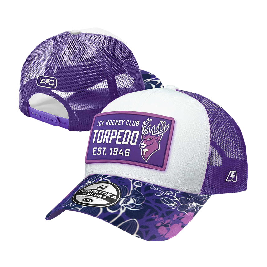 - Бейсболка ХК Торпедо НН бело-фиолетовая с ПВХ шевроном 55-58 (A&C) сетка